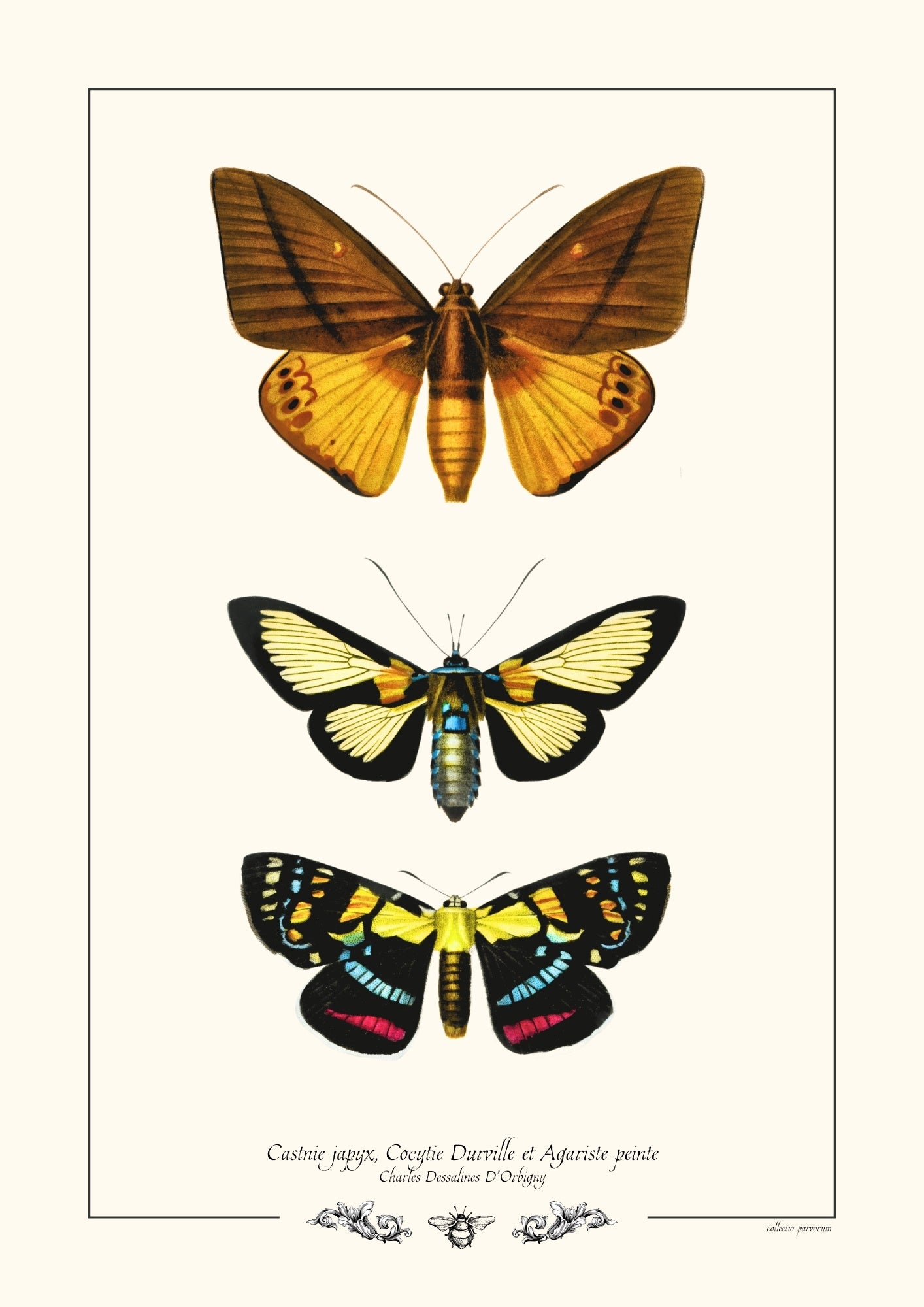 Titre de l'oeuvre : Castnie japyx, Cocytie Durville et Agariste peinte