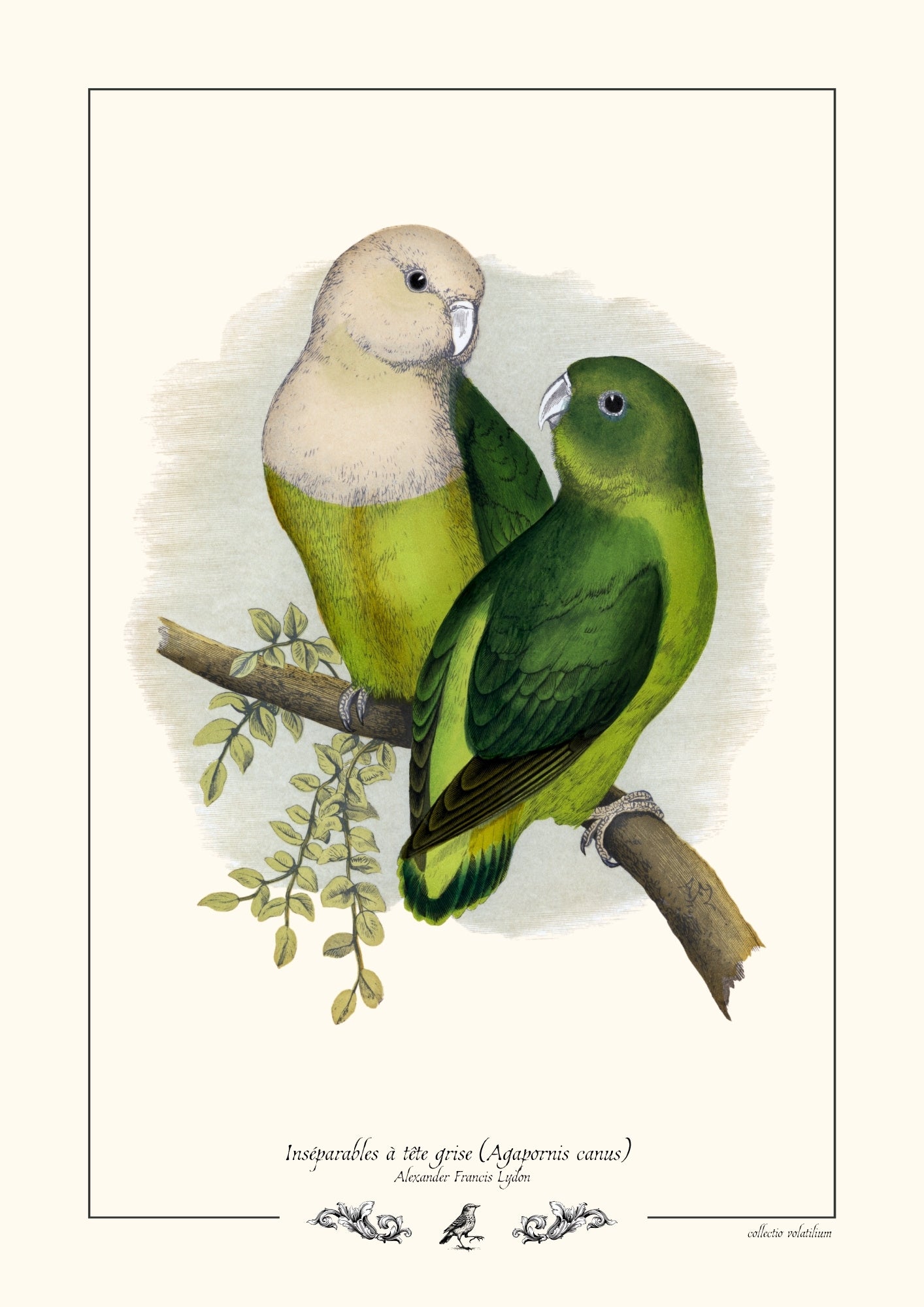 Titre de l'oeuvre : Inséparables à tête grise (Agapornis canus)