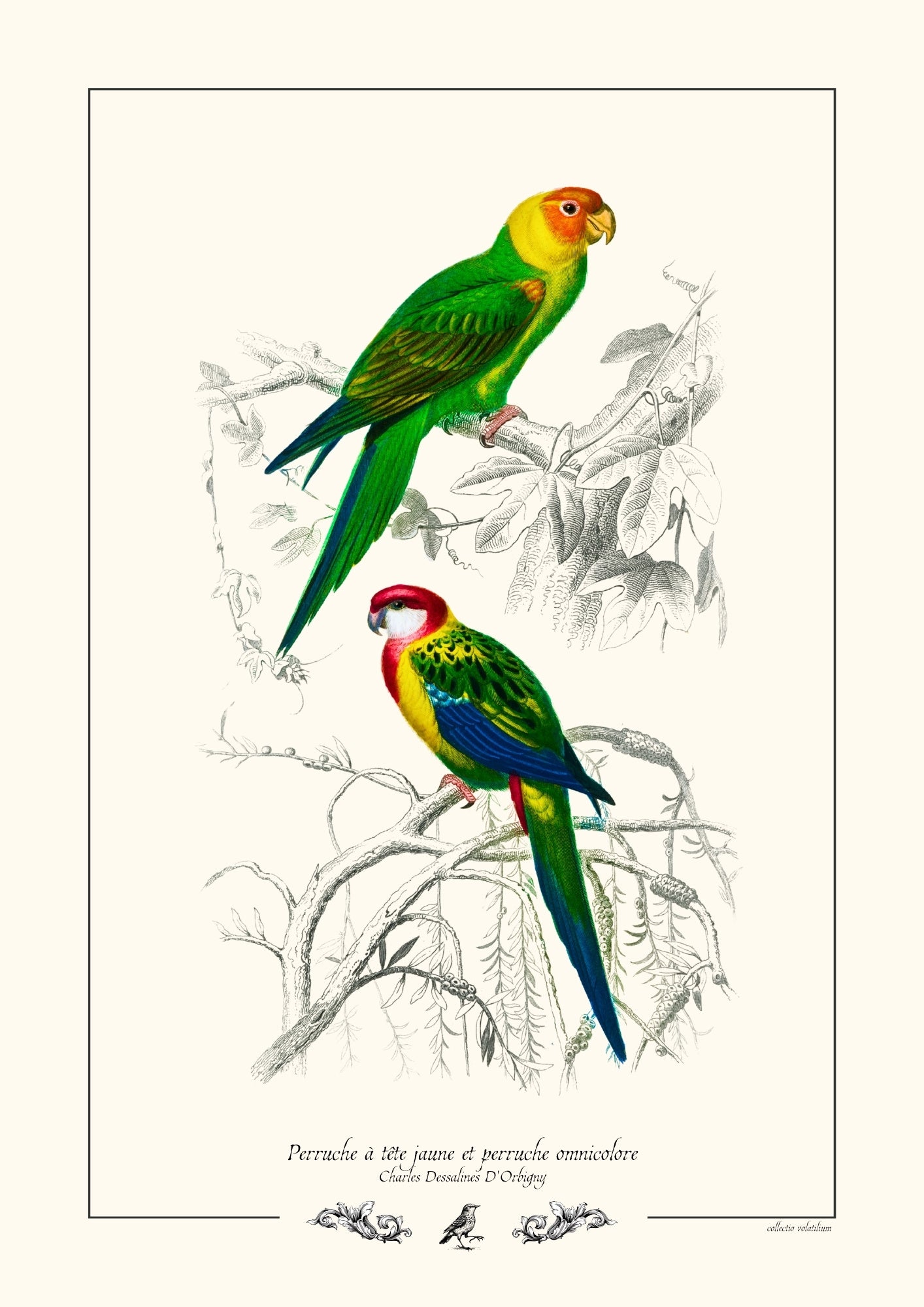 Titre de l'oeuvre : Perruche à tête jaune et perruche omnicolore