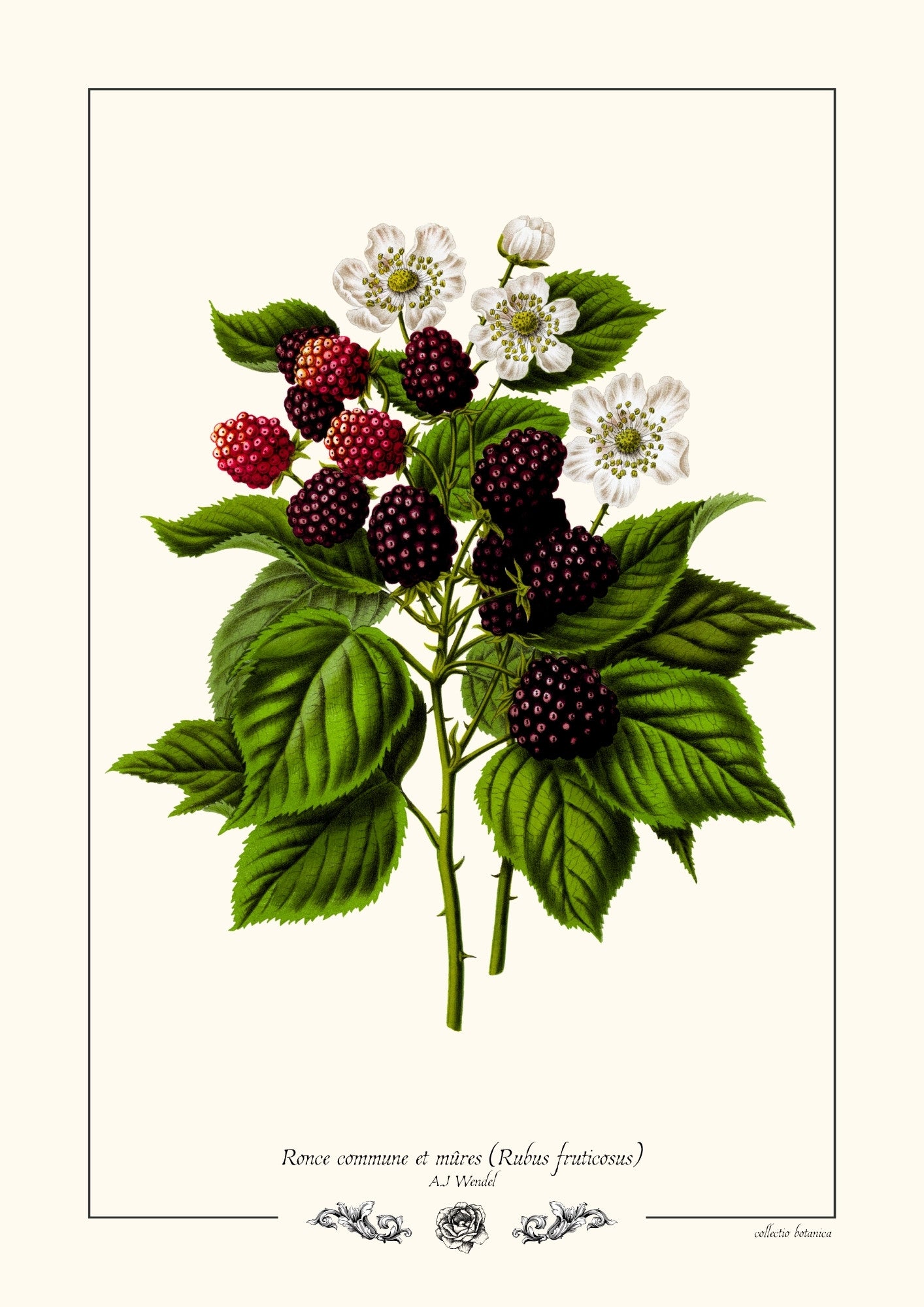 Titre de l'oeuvre : Ronce commune et mûres (Rubus fruticosus)