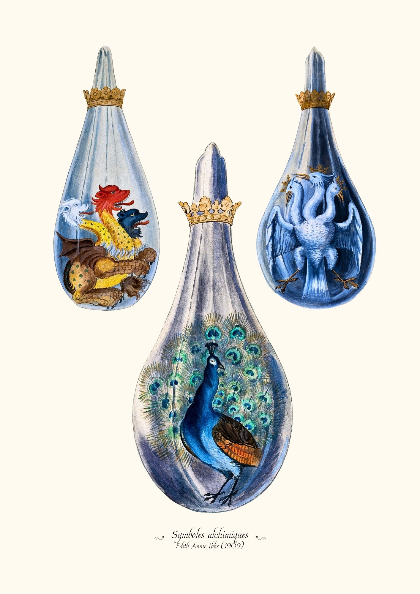 L'aigle à trois têtes représente le Mercure sublimé par trois fois, selon le Splendor Solis de Salomon Trismosin.